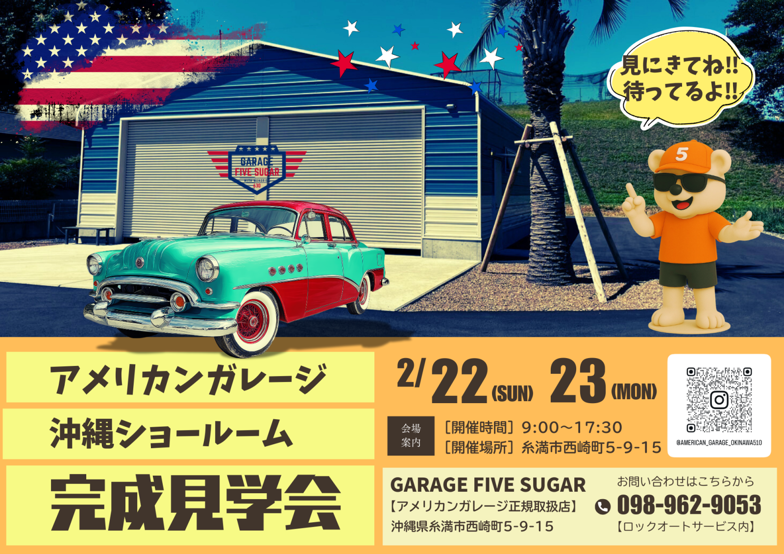 GARAGE FIVE SUGARはアメリカンガレージ正規販売店 (株)MONORISEの代理店になります。お気軽にお問い合わせください。